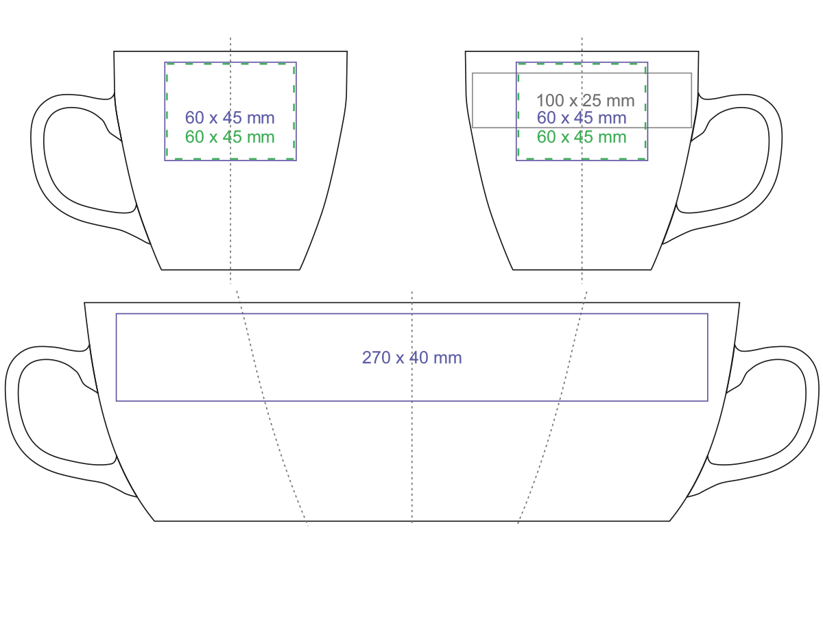 Tazza classica dalla forma ovale e dalla grande capacita. Ha un’impugnatura ergonomica e ampie possibilita di colorazione. Prodotta in Europa.