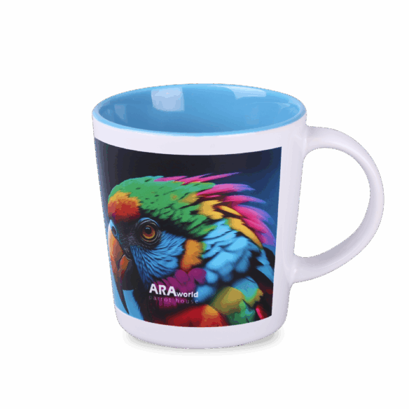 Tazza iconica con una grande area di decorazione. Ha un interno in diverse tonalità di tendenza. Le sue grandi pareti lisce esalteranno perfettamente la stampa applicata.