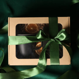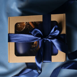 Eleganti accessori per decorare la confezione: nastro o involucro in tinta con la confezione