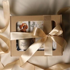 Accessori eleganti per decorare la confezione: nastro o involucro in oro chiaro
