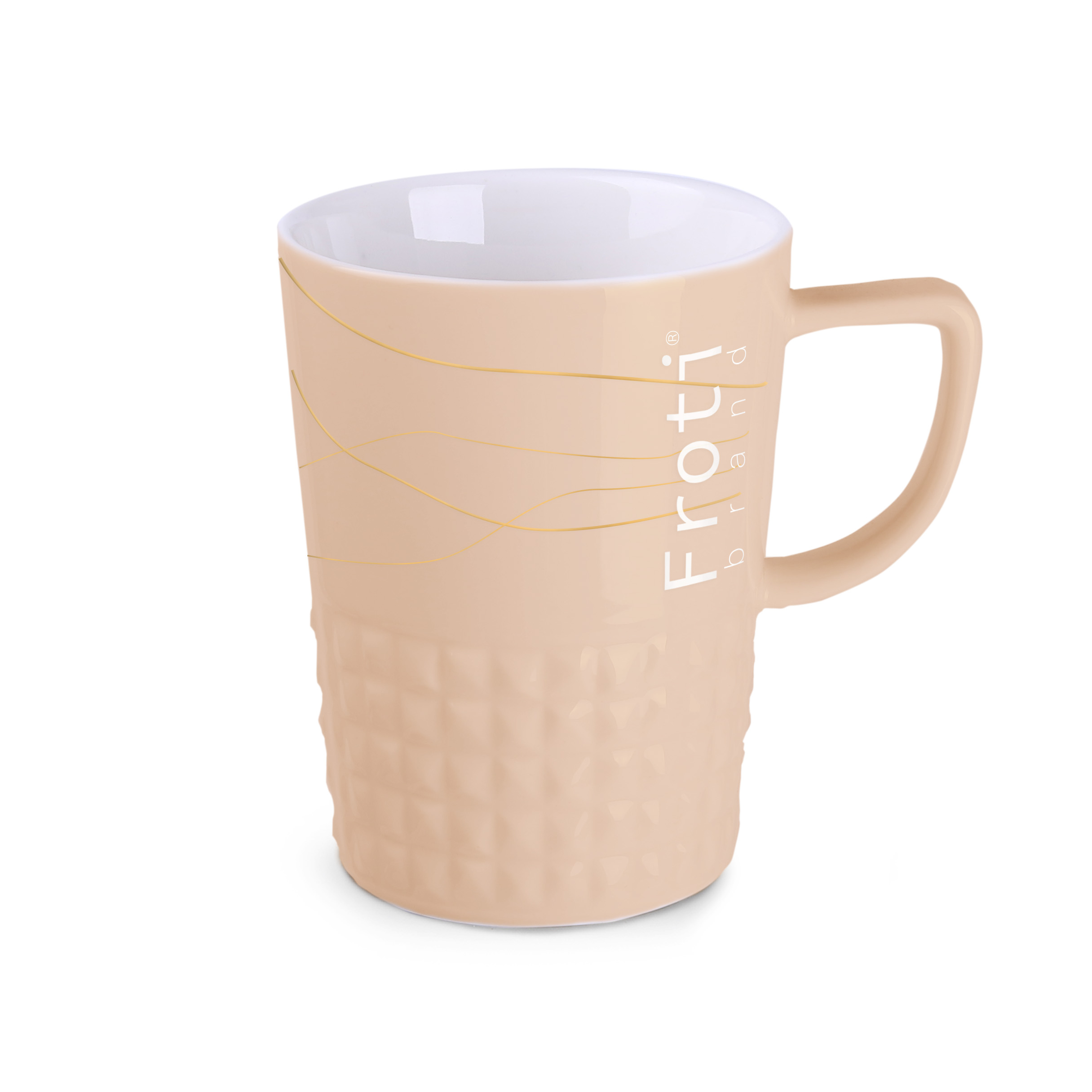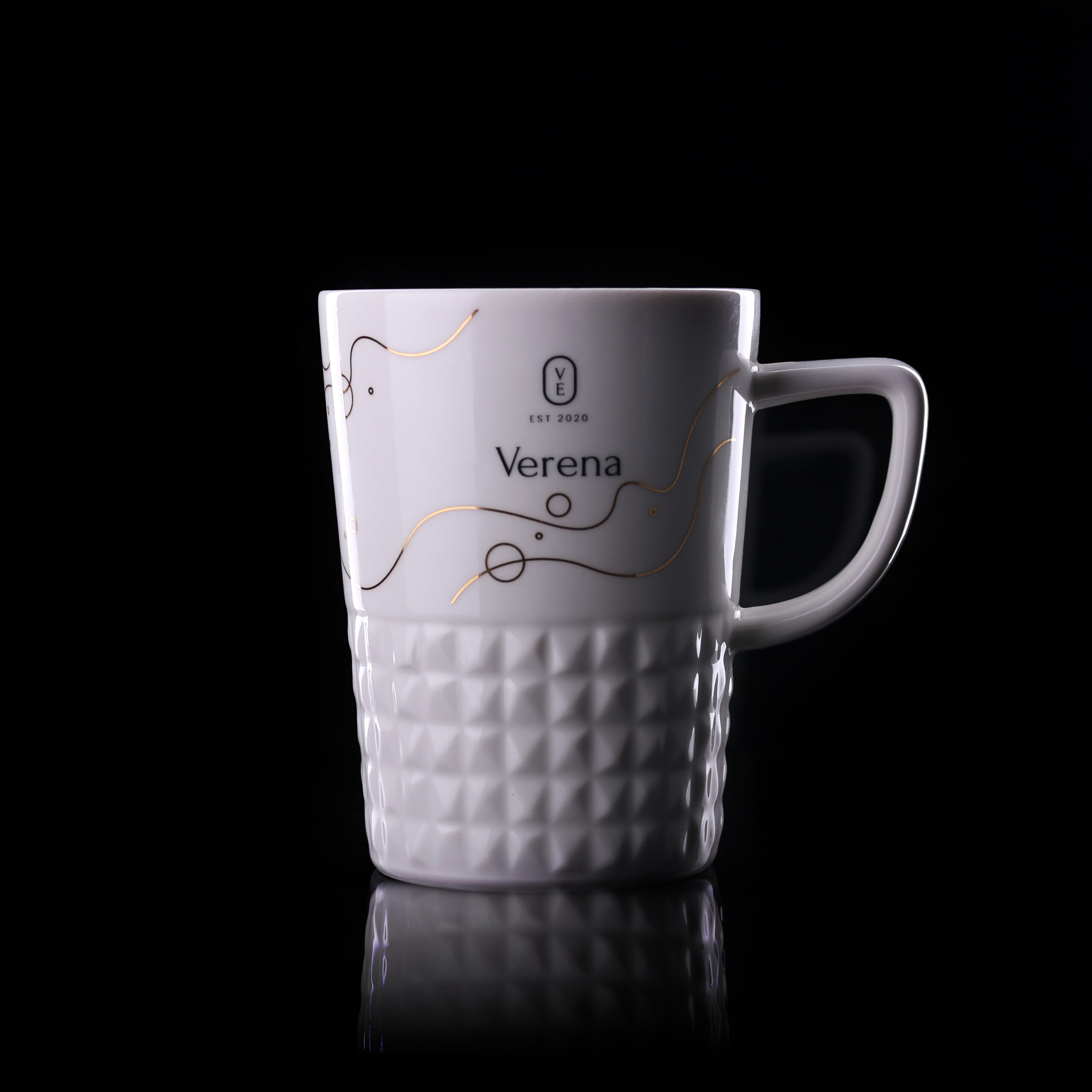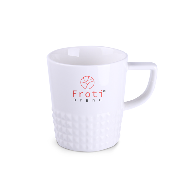 Boccale elegante e di design, realizzato in porcellana di alta qualita. Ha un’impugnatura moderna e sporgenze che gli conferiscono un carattere unico. Perfetta per applicare disegni originali.