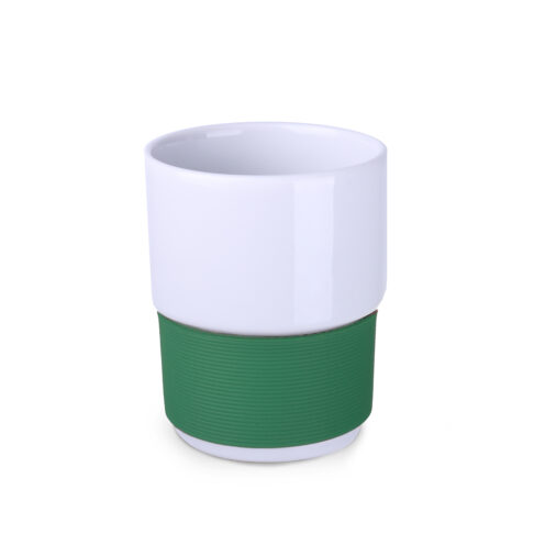 Modello in stile retro dal design semplice, realizzato in porcellana europea. La sua forma consente di impilare il prodotto. Ha un elastico di 40 mm di spessore, disponibile in colori, che protegge le mani dalle scottature.