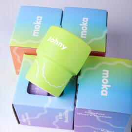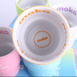 Tazza in stile retrò disponibile in diverse varianti di colore. La sua forma unica consente l’impilaggio, risparmiando spazio e creando set interessanti.