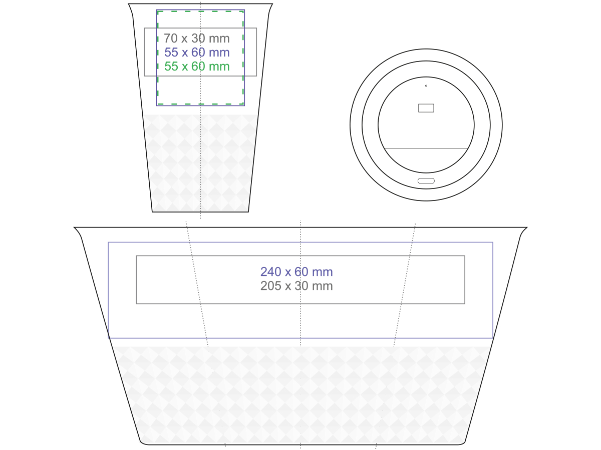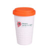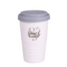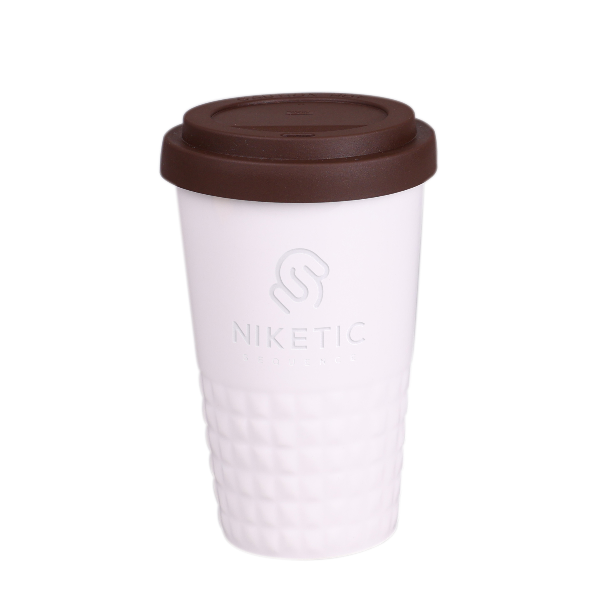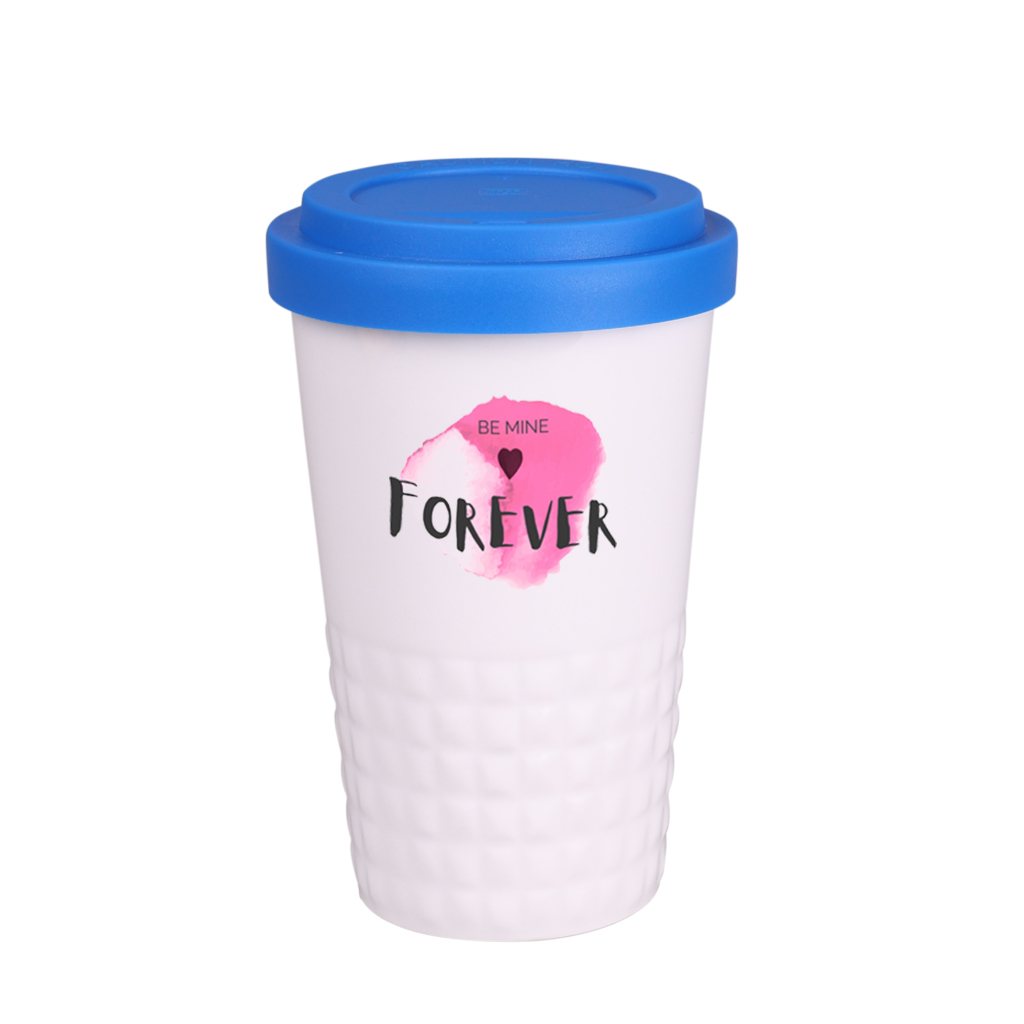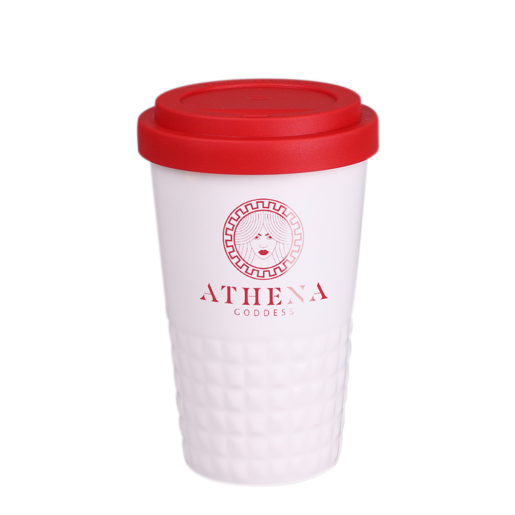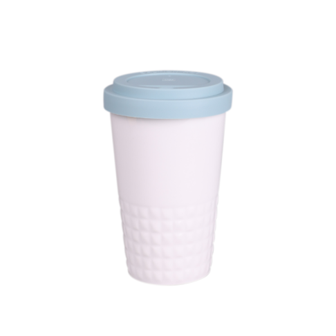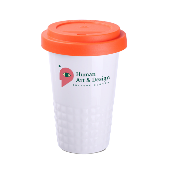 Tazza mobile di design realizzata in porcellana. Presenta una caratteristica finitura della parte inferiore sotto forma di sporgenze. Il modello e destinato a persone attive, amanti dei viaggi e delle gite. Grazie alla rara struttura interna a doppia parete in porcellana, e caratterizzata da un maggiore livello di isolamento termico. Ha un rivestimento disponibile in colori.