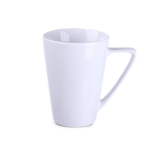 Tazza spaziosa con corpo e manico di forma geometrica. Realizzata in porcellana di alta qualita. Perfetta per l’applicazione di ampie decorazioni.