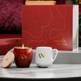 La delicata tazza in porcellana Eris abbinata alla candela ecologica Glamour in cera di soia, personalizzabile. La candela è dotata di un coperchio in legno che aiuta a preservarne il profumo più a lungo e può anch’esso essere personalizzato. Il set è confezionato in un Snowy packaging ecologico dedicato e completato con una fascia elegante e personalizzata. LA DECORAZIONE PRESENTATA È SOLO A SCOPO ILLUSTRATIVO E NON È INCLUSA NEL PREZZO DEL PRODOTTO. SET IN CONFEZIONE DEDICATA SNOWY CON DECORAZIONE SCELTA.