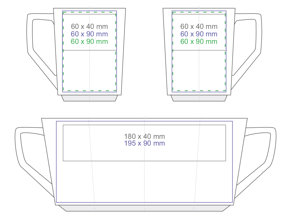 Una tazza bianca con una base originale e interessante, disponibile in colori. Le pareti diritte offrono grandi possibilita di decorazione.