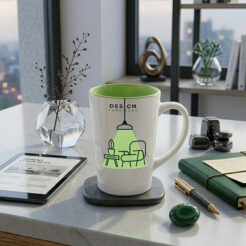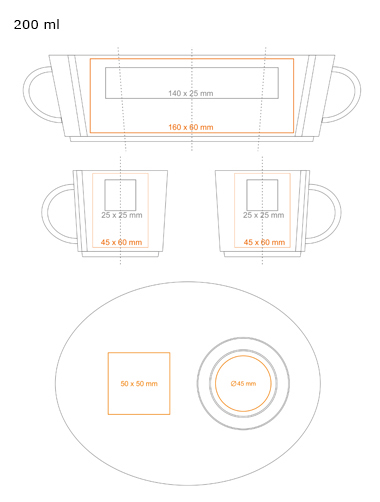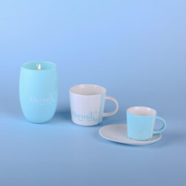 Originale tazza in porcellana. Si distingue per l’interessante goffratura su entrambi i lati dell’orecchio. Mette perfettamente in risalto il messaggio unico del marchio.
