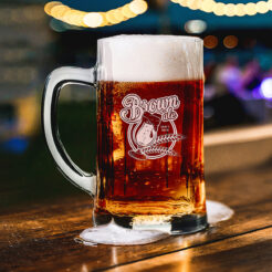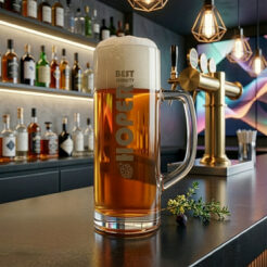 Un boccale solido e maneggevole con caratteristici incavi sulle pareti. Gli incavi danno un effetto tridimensionale alla bevanda dorata all’interno.