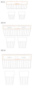 Modello originale in porcellana senza manico. La struttura ondulata del fondo della tazza la rende molto facile da impugnare. Disponibile in tre versioni di capacita. Un design con grandi possibilita di branding e impilabilita.