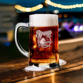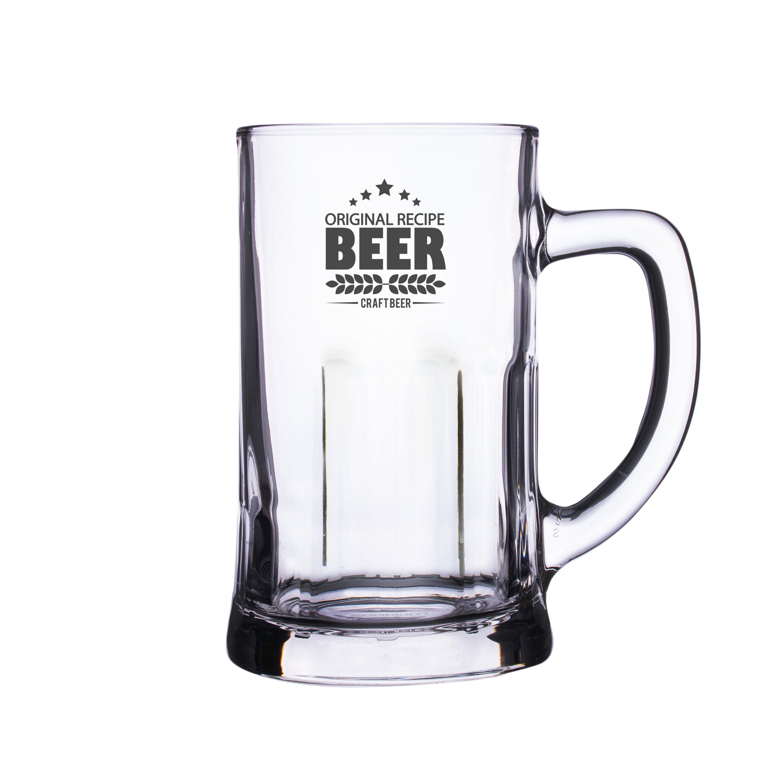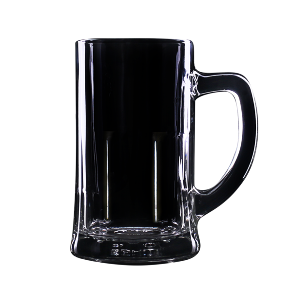 Boccale da birra di grandi dimensioni con pareti spesse. Ha un comodo manico e le caratteristiche scanalature sul fondo.