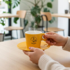 Classica tazza a pareti spesse in porcellana di alta qualità. Caratterizzata da un manico splendidamente profilato. Ha molte varianti di colore.