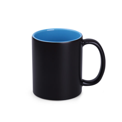 Forma cilindrica classica con superficie nera satinata. Un noto modello di tazza su cui emerge una stampa di qualita fotografica sotto l’effetto del liquido caldo. Ha interni in colori alla moda tra cui scegliere. La superficie esterna opaca “nasconde” ancora meglio la stampa quando la tazza e fredda.