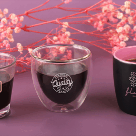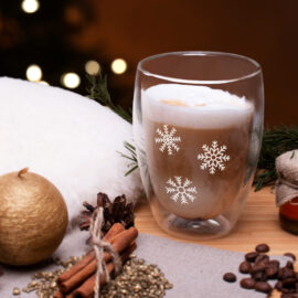 Un popolare modello in vetro in tre dimensioni. Il vetro a doppia parete da un effetto sorprendente di sospensione della bevanda all’interno e mostra meravigliosamente la decorazione su di esso.