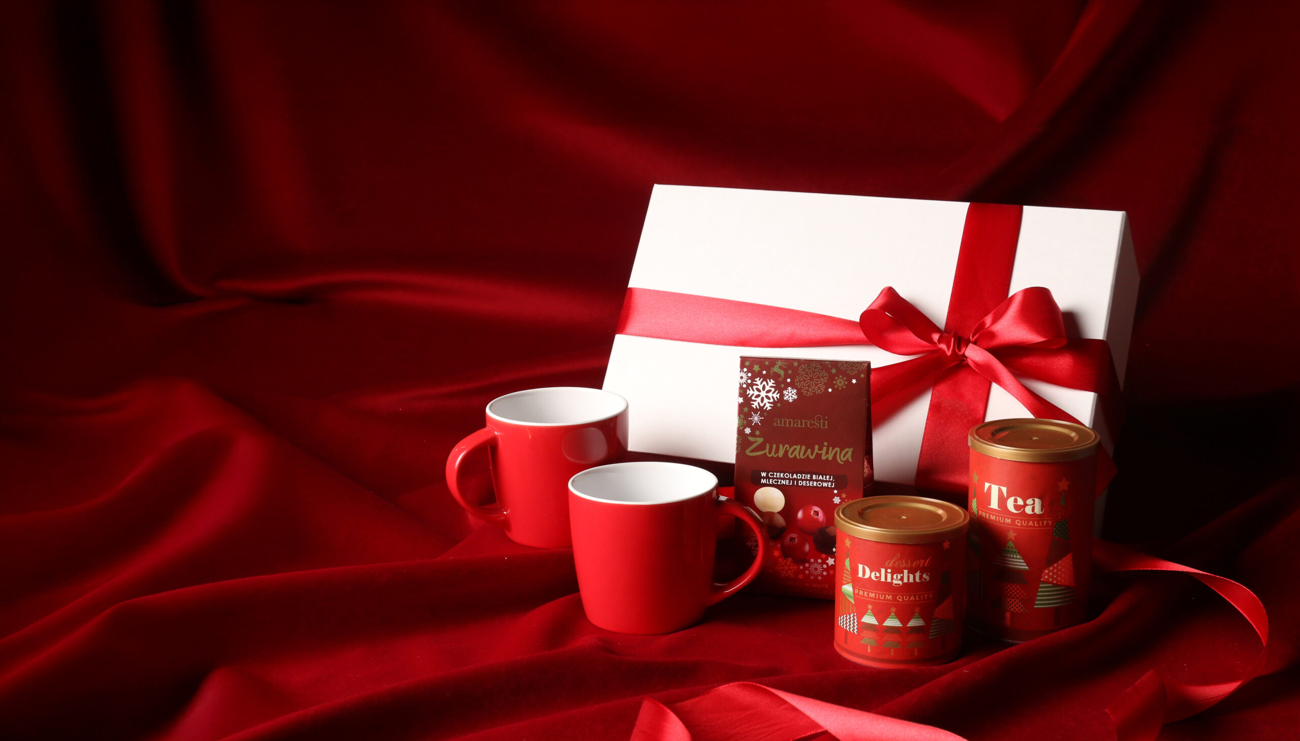 Arricchisci il tuo regalo con caffè, tè o cioccolato aromatici in lattine con il marchio invernale. Completa il set con squisiti dolciumi di alta qualità, creando un’esperienza di gusto indimenticabile.